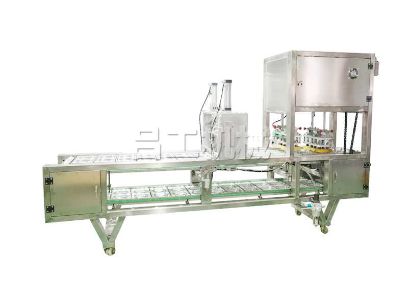 LG-280-氣調(diào)鎖鮮碗裝包裝機(jī)該機(jī)采用不銹鋼制造,適用于各種形狀的杯碗盒作容器的液體灌裝、封口、切邊、自動(dòng)控溫、廢料吸卷、日期打印。本廠將根據(jù)用戶(hù)需要設(shè)計(jì)不同的模具、灌裝、封口、剪切等機(jī)件滿(mǎn)足用戶(hù)需求,此機(jī)型可增加:帶光電檢測(cè)和自動(dòng)落杯裝置。