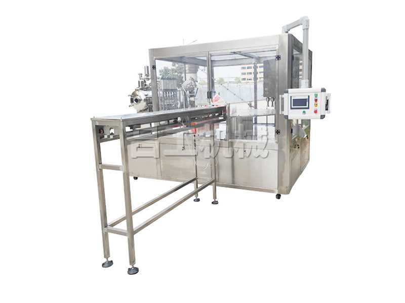 特點(diǎn):本機(jī)從自動(dòng)定位—自動(dòng)吹氣—自動(dòng)定量?jī)纱喂嘌b—自動(dòng)清洗—自動(dòng)下蓋—自動(dòng)旋蓋—自動(dòng)出袋